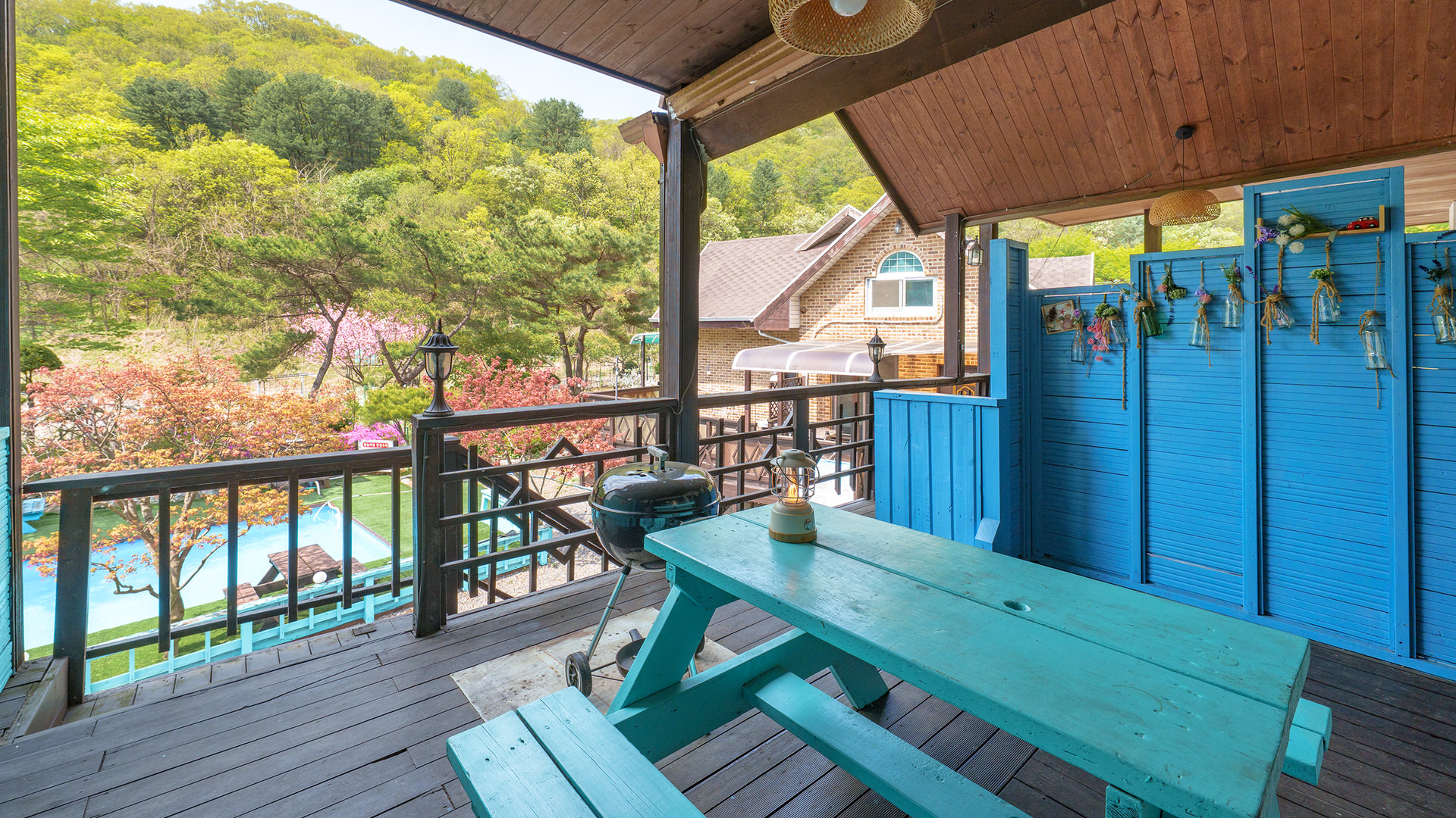 - 집기품목 : 욕실용품, 남녀공용, TV, 금연, 냉장고, 에어컨, 전기밥솥, 취사시설/도구, 개별바비큐, 식탁, 전자레인지, 인덕션, 드라이기, 샴푸, 린스, 바디워시, 비누, 치약, 타월, 침대방, 산전망